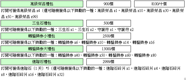 4、活動獎勵物品,每項僅可領取一次,若無特殊註明均為綁定物品;