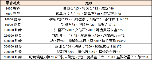 活動描述:瘋狂連續儲值拿大獎!!獎勵價值大於15萬!!