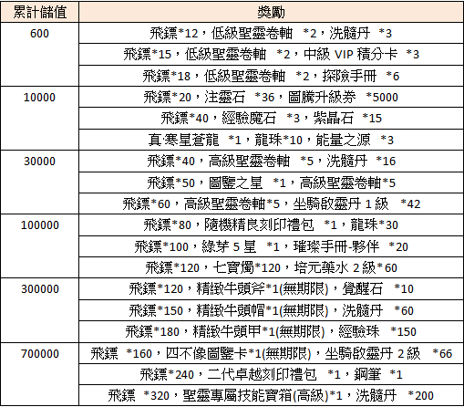 注意事項:只要活動期間累計儲值達到指定額度即可於活動面板領取相應的獎勵;參加活動,請保持在線儲值,離線儲值會導致儲值的記錄時間,以下次上線時間為依據,若因次錯過活動時間,將視同放棄活動獎勵,請您留意。
