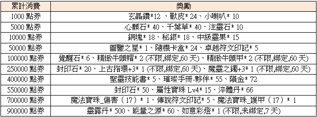 注意事項:1、本活動最低消費不能低於30萬點券,才能獲得相應的排名獎勵;