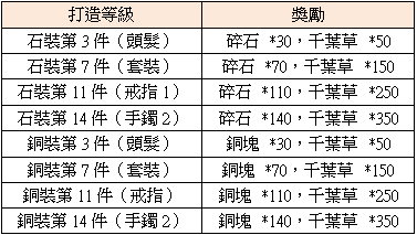 活動描述:活動期間,只要成功打造達指定等級,即可獲得額外獎勵。