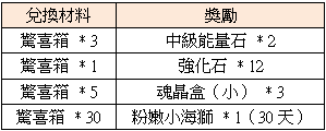 活動規則:活動期間,可使用指定物品兌換獎勵