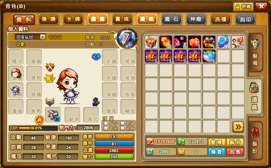 1.裝備背包及道具背包新增翻頁功能及第二頁,背包上限從49格增加為98格;