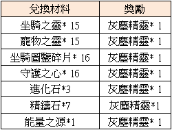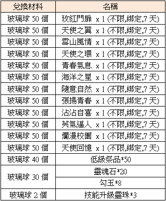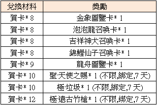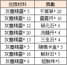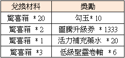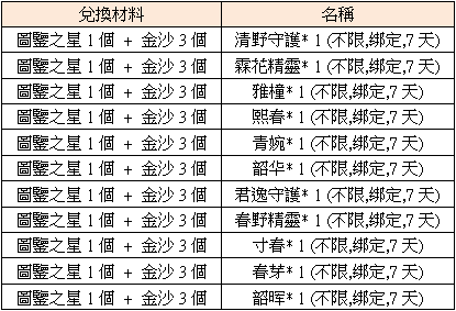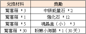 活動規則:活動期間,可使用指定物品兌換獎勵