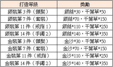 活動描述:活動期間,只要成功打造達指定等級,即可獲得額外獎勵。