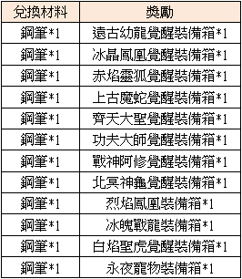 1、兌換的獎勵物品均為綁定,裝備與時裝類道具時限7天。
