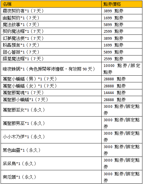 活動描述:活動期間,使用指定物品即可兌換超值獎勵,商城上架 南瓜燈:100點券/1個。