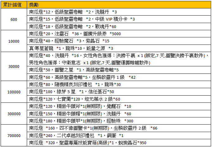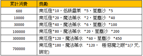 活動名稱:南瓜夜宴-月度活動の累計儲值