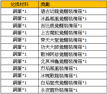 活動獎勵:使用指定物品兌換:
