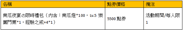活動名稱:南瓜夜宴の限時禮包