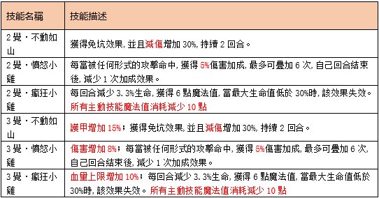 注:截圖及表格為測試服內容,僅供參考,正式上線將可能有所調整。