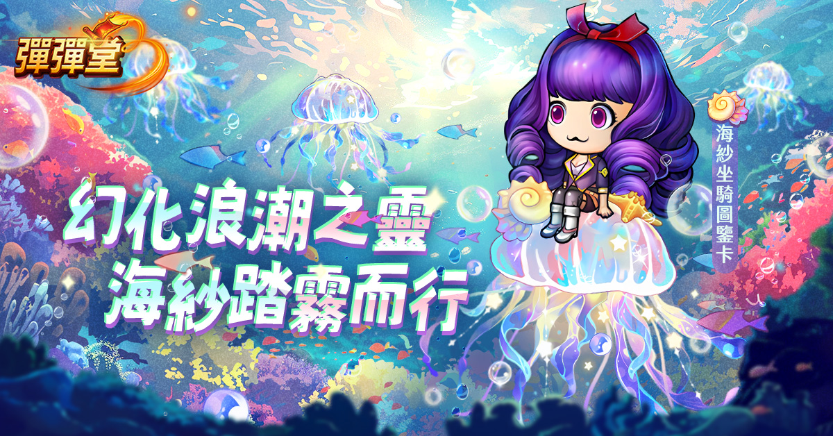 海紗坐騎像小小的深海精靈,帶著夢幻光暈和搖曳觸手,把你輕輕托起漂浮在潮汐上。