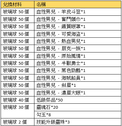 活動描述:活動期間,彈友們可以用變身獲得的玻璃球兌換超萌套裝喔~玻璃球不夠的彈友們,可在彈彈搶購購買,100點券/個