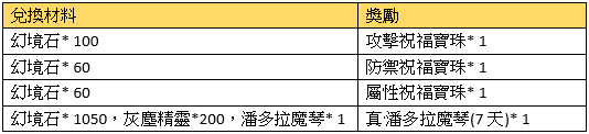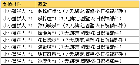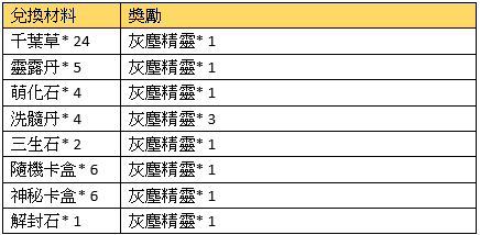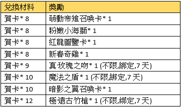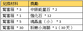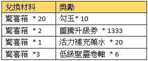 活動規則:活動期間,可使用指定物品兌換獎勵
