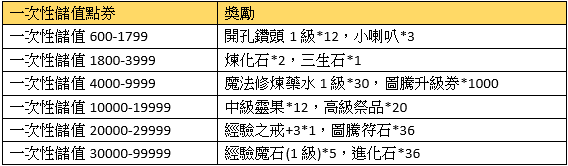 活動描述:活動期間,玩家每儲值一定數額的點券即可獲得超值獎勵!!一次性儲值獎勵可重複領取。