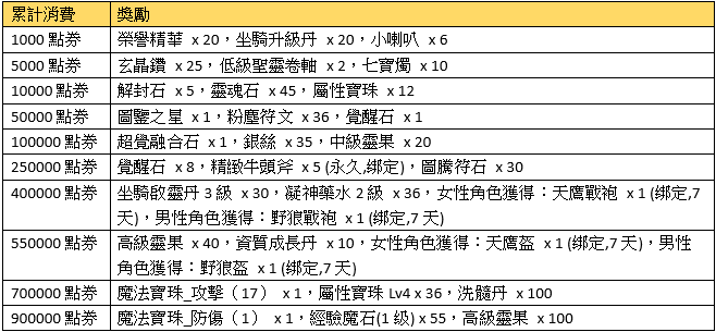 活動描述:活動期間,玩家累計儲值達到一定數額的點券即可獲得超值獎勵!!!!