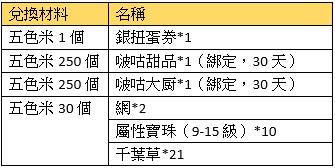 2、該活動限兌換5次,用於兌換的物品在兌換後將會消失;