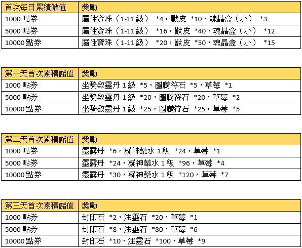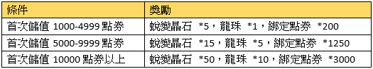 2、首次每日累積儲值獎勵請在儲值當日於專屬活動面版領取,當日未領視同放棄。
