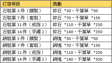 活動描述:活動期間,只要成功打造達指定等級,即可獲得額外獎勵。