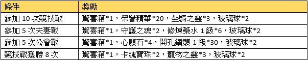 活動描述:活動期間,參加各種競技戰,只要你夠努力和強悍,任務獎勵隨你拿去。
