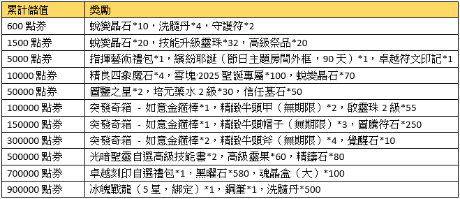 活動描述:瘋狂連續儲值拿大獎!!獎勵價值大於15萬!!