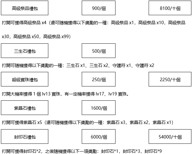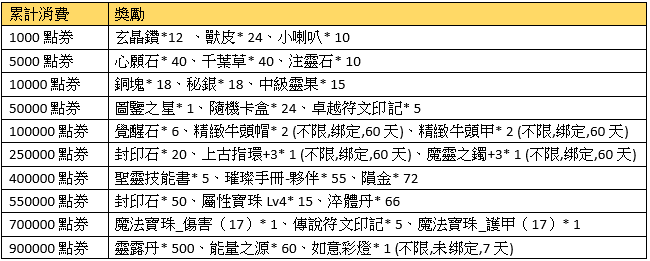 4、活動獎勵物品,每項僅可領取一次,若無特殊註明均為綁定物品;