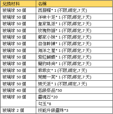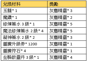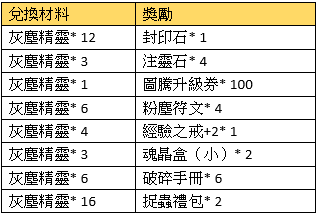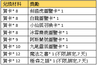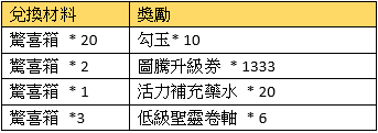 活動規則:活動期間,可使用指定物品兌換獎勵