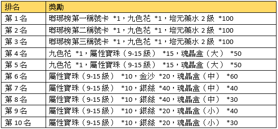 活動描述:活動結束時,彈友們只要在遊戲中累計儲值達到前十名就可以獲得額外獎勵喔。