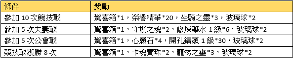 活動描述:活動期間,參加各種競技戰,只要你夠努力和強悍,任務獎勵隨你拿去。