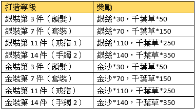 活動描述:活動期間,只要成功打造達指定等級,即可獲得額外獎勵。