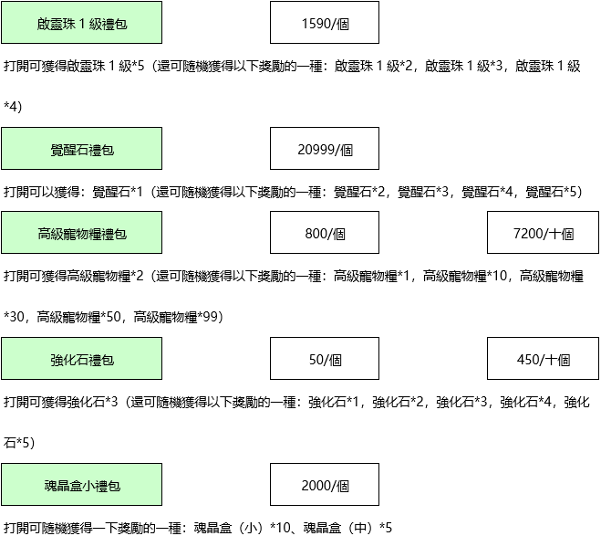 4、活動獎勵物品,每項僅可領取一次,若無特殊註明均為綁定物品;