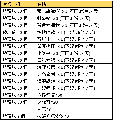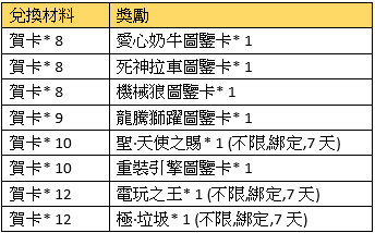 活動規則:活動期間,可使用指定物品兌換獎勵