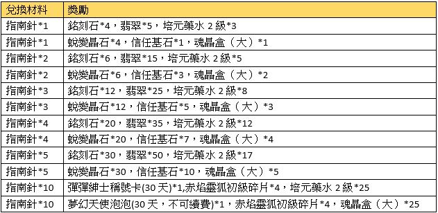 活動規則:活動期間,收集指南針,可兌換超值物品。