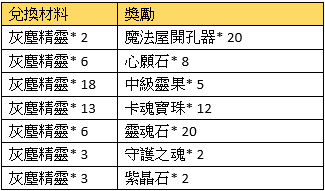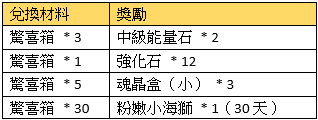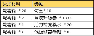 活動規則:活動期間,可使用指定物品兌換獎勵