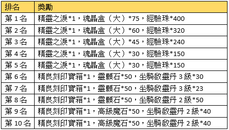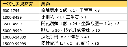 活動獎勵:與之前一致,請參照遊戲內。