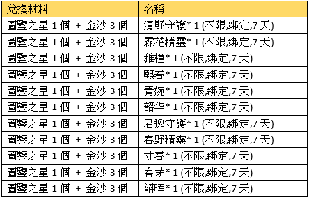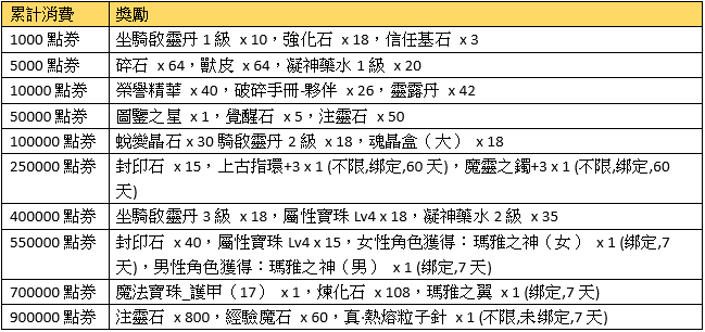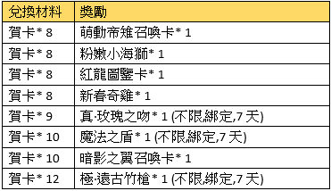 注意事項:兌換的獎勵物品均為綁定;