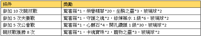 活動描述:活動期間,參加各種競技戰,只要你夠努力和強悍,任務獎勵隨你拿去。