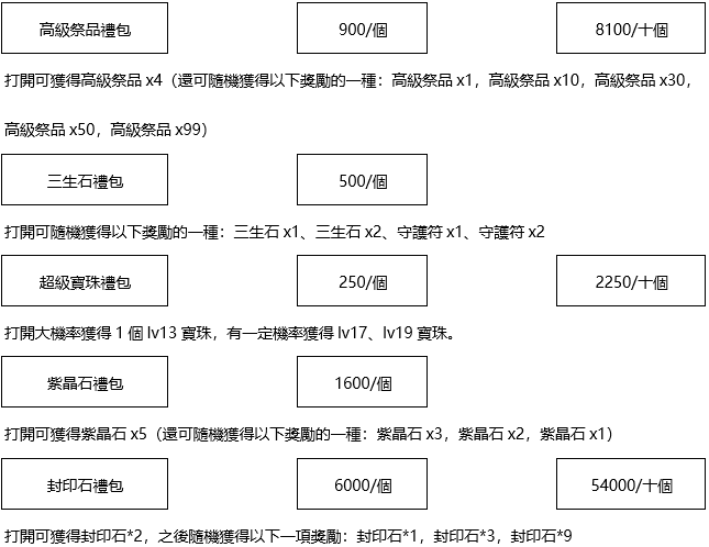 4、活動獎勵物品,每項僅可領取一次,若無特殊註明均為綁定物品;
