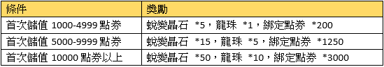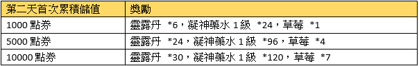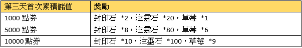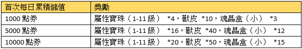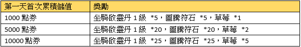 2、首次每日累積儲值獎勵請在儲值當日於專屬活動面版領取,當日未領視同放棄。