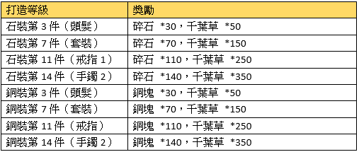 活動描述:活動期間,只要成功打造達指定等級,即可獲得額外獎勵。