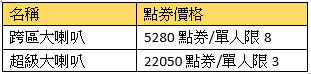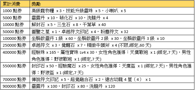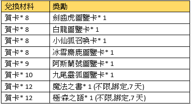 注意事項:兌換的獎勵物品均為綁定;
