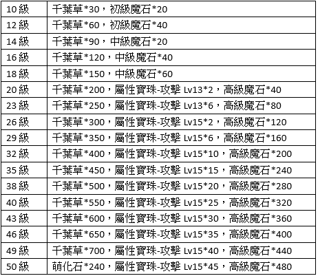 1、任意裝備進階到 1階可獲得:進階石*10