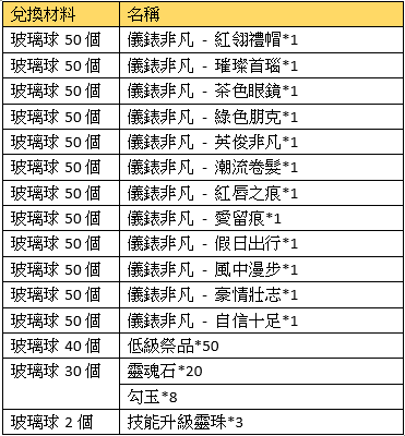 活動描述:活動期間,彈友們可以用變身獲得的玻璃球兌換超萌套裝喔~玻璃球不夠的彈友們,可在彈彈搶購購買,100點券/個