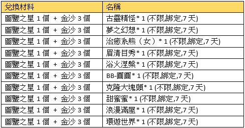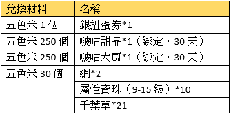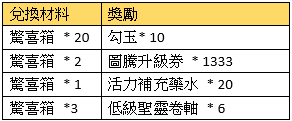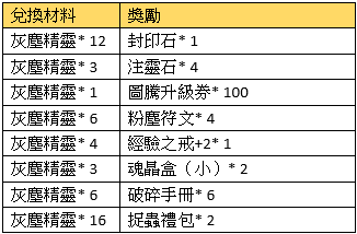 活動規則:活動期間,可使用指定物品兌換獎勵