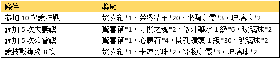 活動描述:活動期間,參加各種競技戰,只要你夠努力和強悍,任務獎勵隨你拿去。
