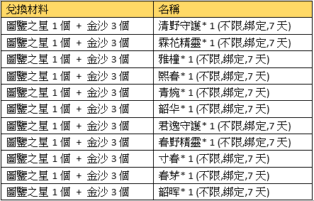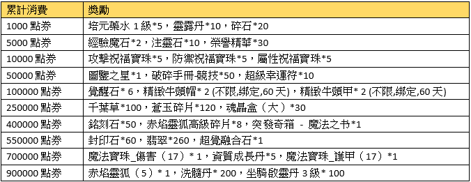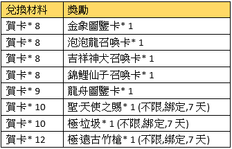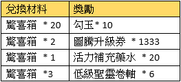 注意事項:兌換的獎勵物品均為綁定;