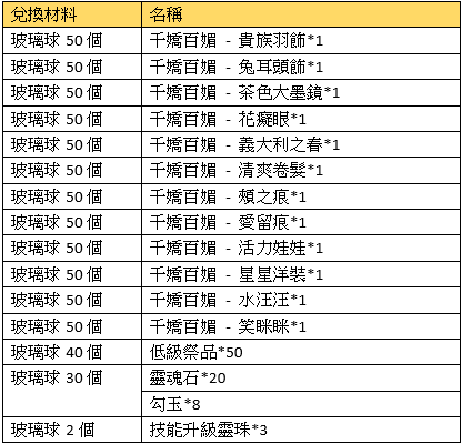 活動描述:活動期間,彈友們可以用變身獲得的玻璃球兌換超萌套裝喔~玻璃球不夠的彈友們,可在彈彈搶購購買,100點券/個
