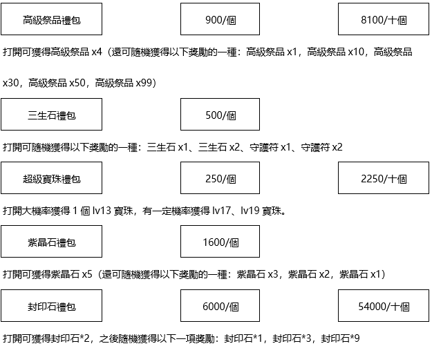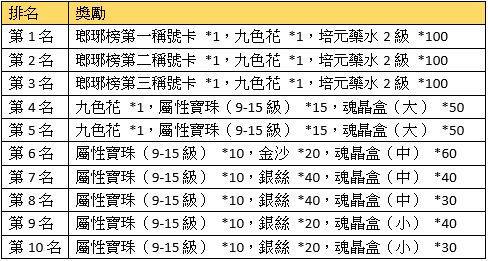 活動獎勵:與之前一致,請參照遊戲內。