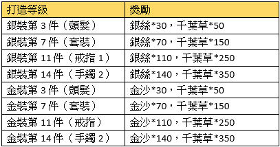 活動描述:活動期間,只要成功打造達指定等級,即可獲得額外獎勵。