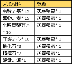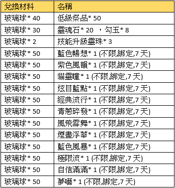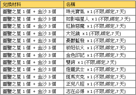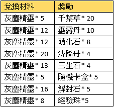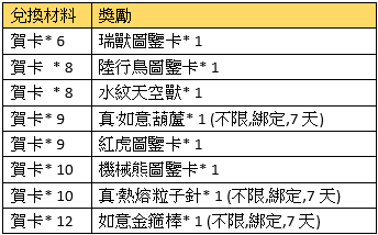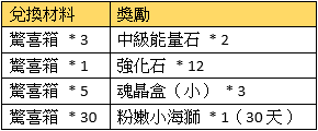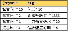 活動規則:活動期間,可使用指定物品兌換獎勵